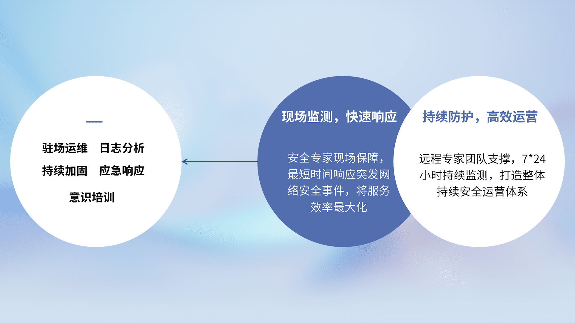 7X24小时持续监测安全事件,保持安全策略有效性,降低资产脆弱性风险,,精准拦截黑客攻击,,减少被黑客利用的机会,,第一时间遏制,,降低损失。。。